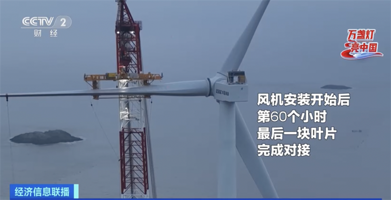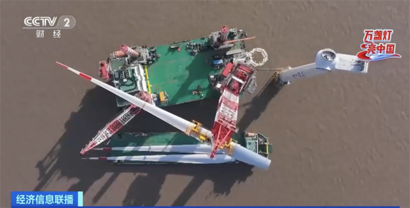 记者 张伟杰:浙江宁波外12海里的东海海域是一片特殊的工地——海上风电的安装施工现场。一艘海上风电施工船,伸出了四条腿,稳稳地站在了这片海域中,船上的打桩锤首先会把重达千吨的单桩,像钉钉子一样钉进海床中,紧接着海平面上风机塔筒会一节一节地竖起来,接下来起重机会把风力发电机的机舱和轮毂吊装到100多米的高空,叶片也将在高空和轮毂实现毫米级的精准对接。十多年前,我国首批海上风力发电机装机容量只有1.5兆瓦,叶轮直径大约在70米左右,如今,装机容量达16兆瓦,叶轮直径252米的风机即将在福建海域下海安装。到去年9月底,我国海上风电累计装机容量达到2726万千瓦,这个数字还在快速增长。强大的基建能力,在海平面竖起了一座又一座大风车,蔚蓝色的海风驱动着叶片,点亮了城市的万家灯火。