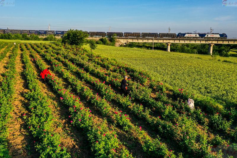 近期,该村栽种的80多亩重瓣红玫瑰进入收获期,花农正抓紧时间采摘、晾晒,再将采摘的红玫瑰花瓣送到西安市依山居玫瑰制品厂进行深加工。