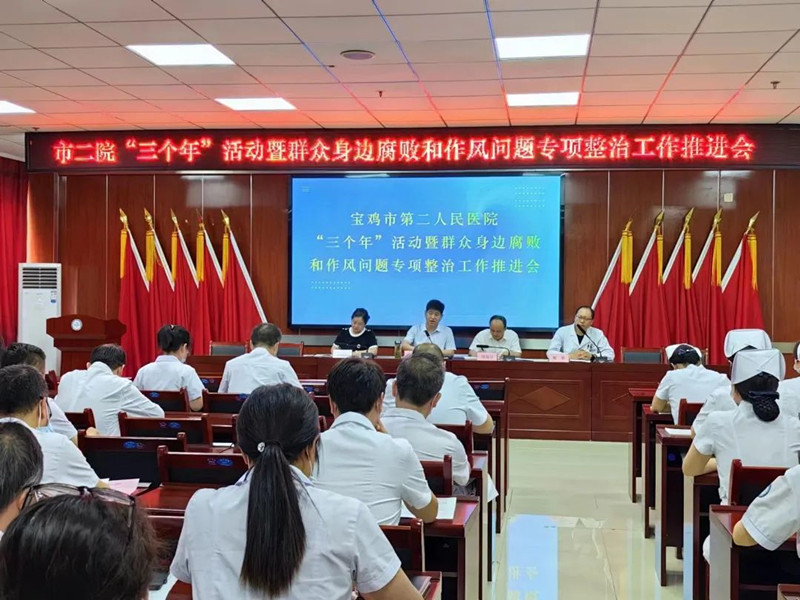 阳光讯(记者 张伟 通讯员 党春丽)为认真贯彻落实市卫健委“三个年”暨整治群众身边腐败专项活动推进会要求,切实转变作风、提升能力,6月13日下午,宝鸡市第二人民医院召开专题推进会,就近期工作进行再强调,再部署。班子成员、各科室主任、副主任、护士长、各支部委员参加会议。会议由党委书记赵锁林主持召开。