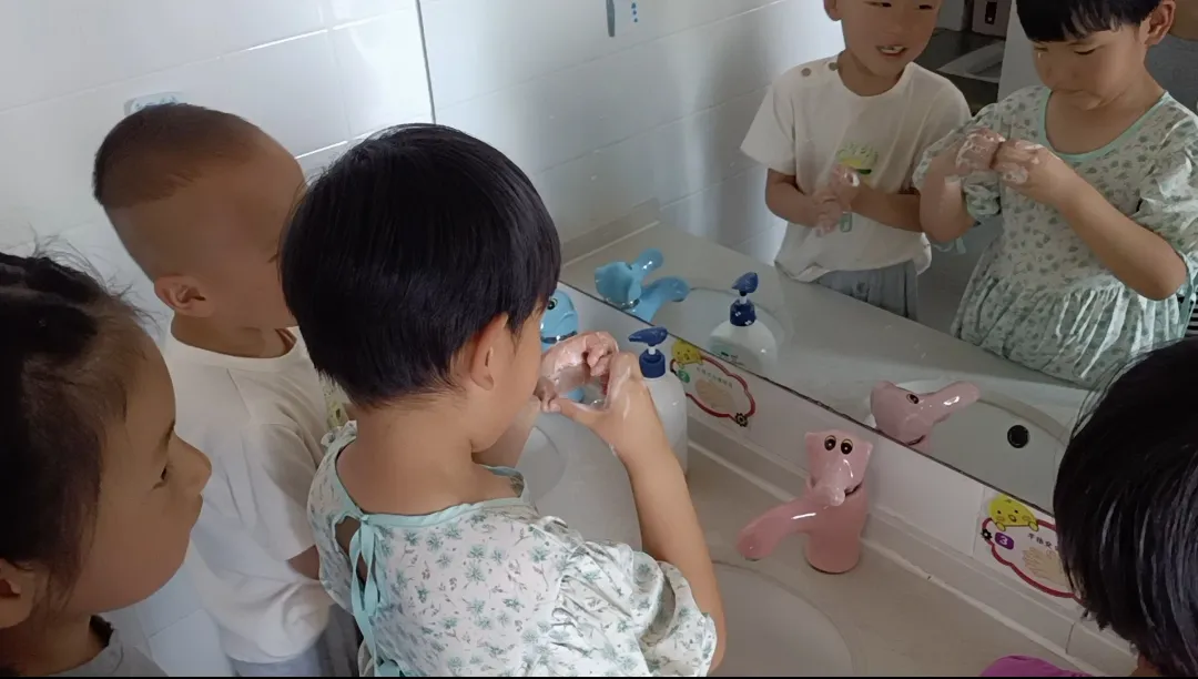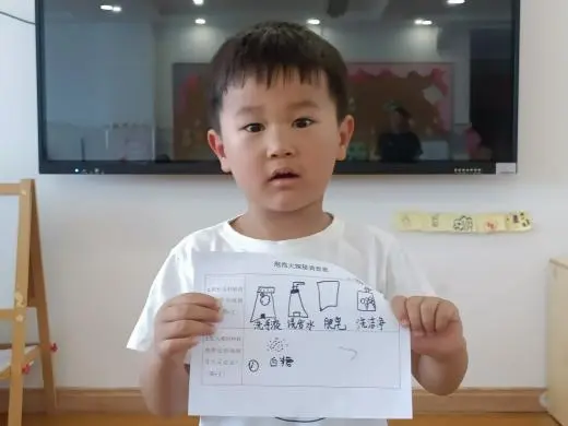这天户外活动结束后,孩子们在盥洗,突然传来一个声音:“哇!我手上有泡泡”“哈哈,我也有,泡泡停在我手上,我一吹就没了,真好玩。”原来是孩子们在洗手时出现的泡泡让他们产生了兴趣.....