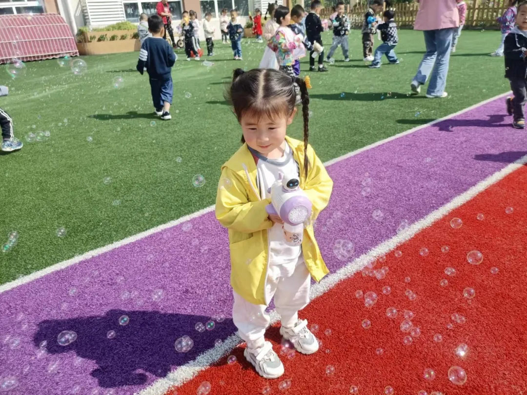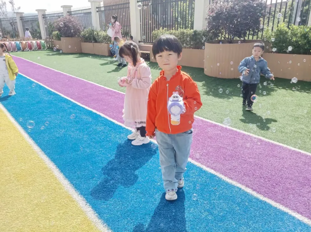这是一次体验感满满的课程之旅,面对“泡泡”,孩子们总有数不尽的憧憬,享不完的乐趣!在吹泡泡、玩泡泡、寻找泡泡工具、制作泡泡水等活动中,他们运用已有经验积极动脑、主动探索、大胆尝试,并在其中体验到成功的乐趣。相信我们的孩子都是有能力、有想法的创新者,相信在这一系列的学习探索活动中,孩子们能累积经验进行更深度的学习,同时也希望孩子们在七彩泡泡的陪伴下将欢声笑语传递给更多人,犹如阳光下的泡泡一样光彩夺目!