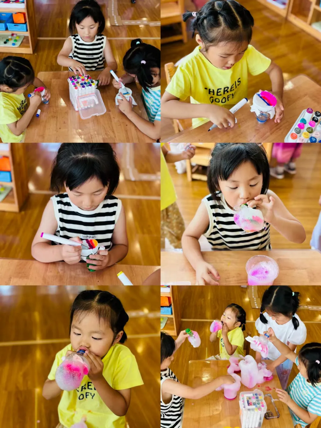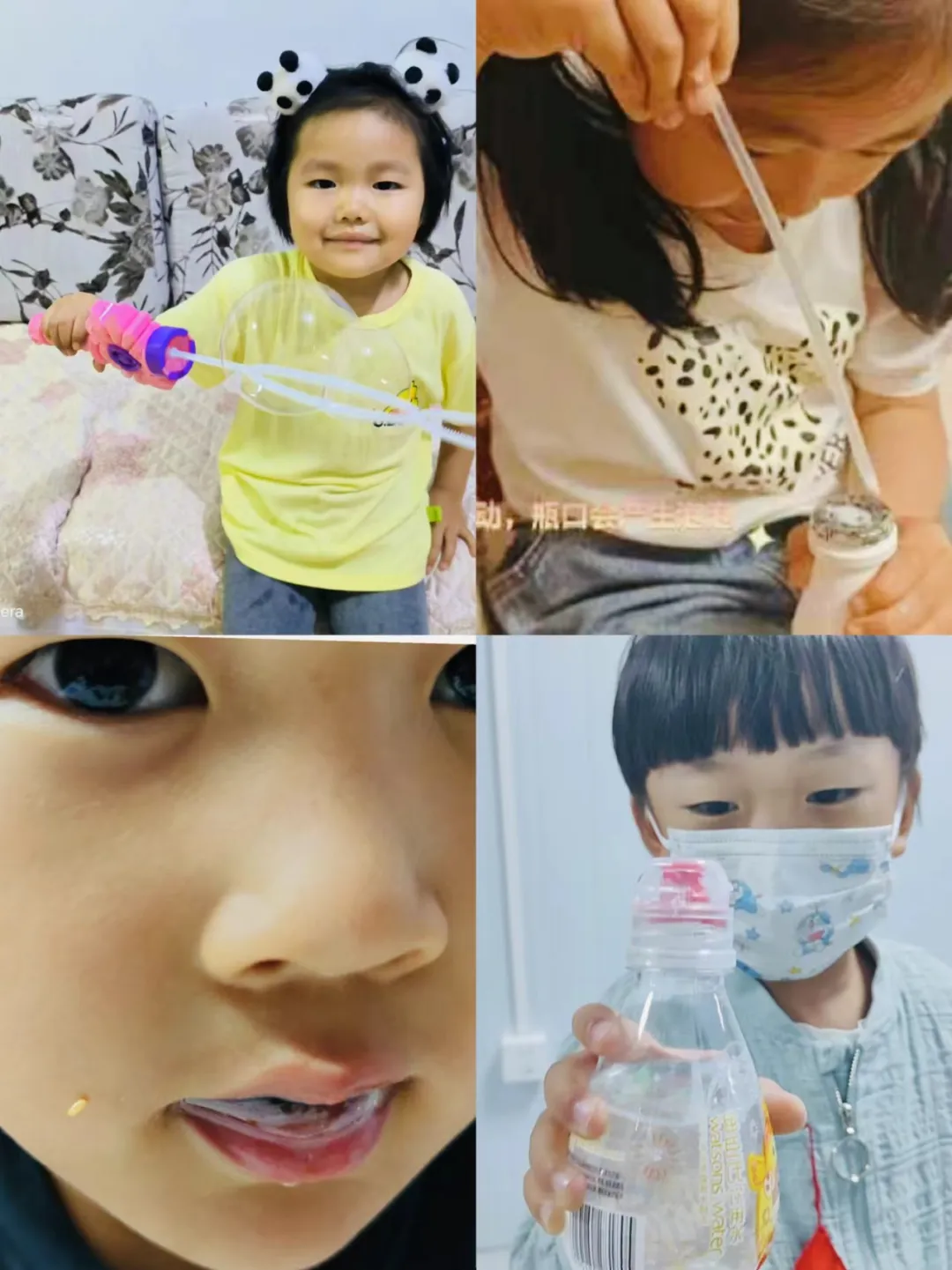 喝饮料的时候也有泡泡,泡泡真好玩!