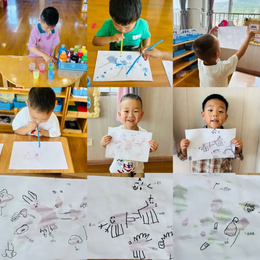 泡泡易碎,转瞬即逝,每个泡泡代表着每个孩子七彩的梦,孩子们想把这美丽的泡泡留住,于是想到了区域游戏中的材料来进行泡泡画,有的小朋友用吸管和颜料吹出了泡泡,有的小朋友用水彩笔画出了泡泡,一个个五颜六色的泡泡出来啦,让大家一起来欣赏吧!