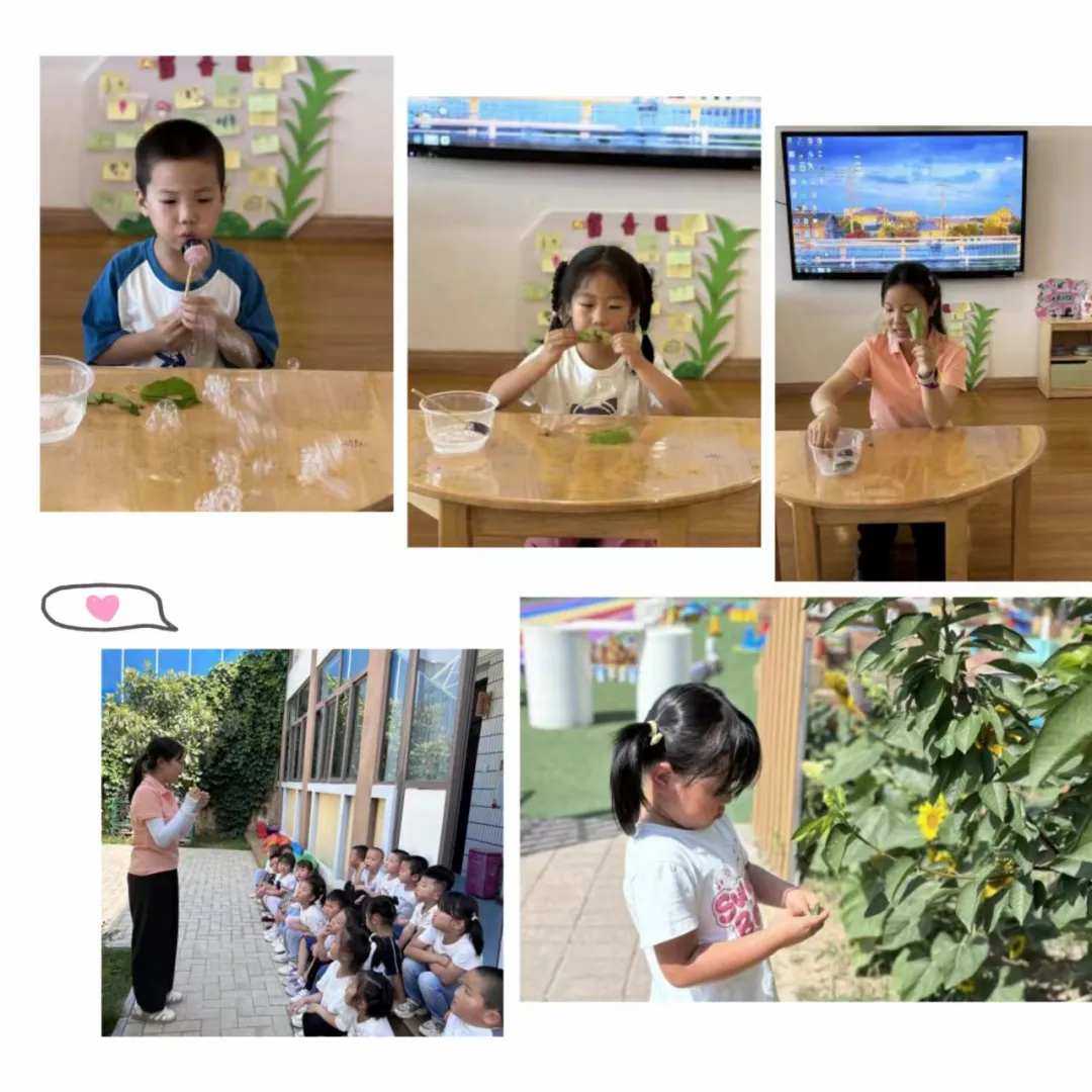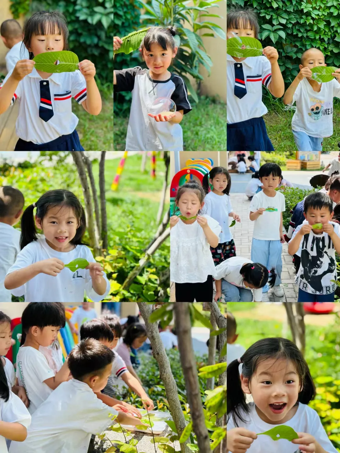 “吹泡泡”是幼儿最喜欢的一项游戏活动,而“源于生活,缘于兴趣”的活动更能引起幼儿的观察与思考。上午,小朋友们一起去户外探究,他们发现树叶可以吹泡泡,于是他们纷纷行动起来。