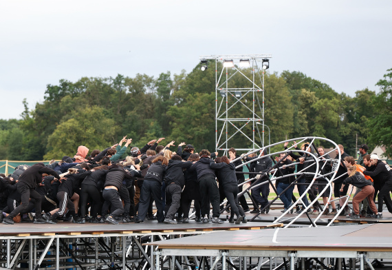 导演托马斯·乔利表示,在这场表演中,他设计了一个情景——在未来的某一时间,奥运会已经消失,但奥运的遗迹被世人发现,奥林匹克运动重新焕发生机。