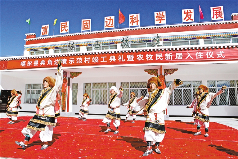2012年10月,由陕西省援建的阿里地区首个边境小康示范村—噶尔县扎西岗乡典角村竣工。这是入住仪式上,群众跳起欢快的舞蹈。 本文照片均由西藏日报记者 温凯摄