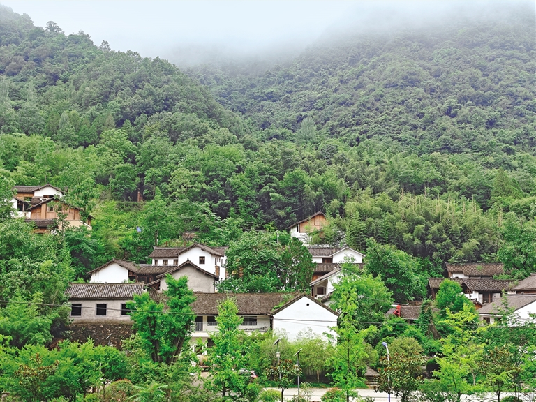 商南县金丝峡镇太子坪村,掩映在青山中的民居。记者 王佳伟摄