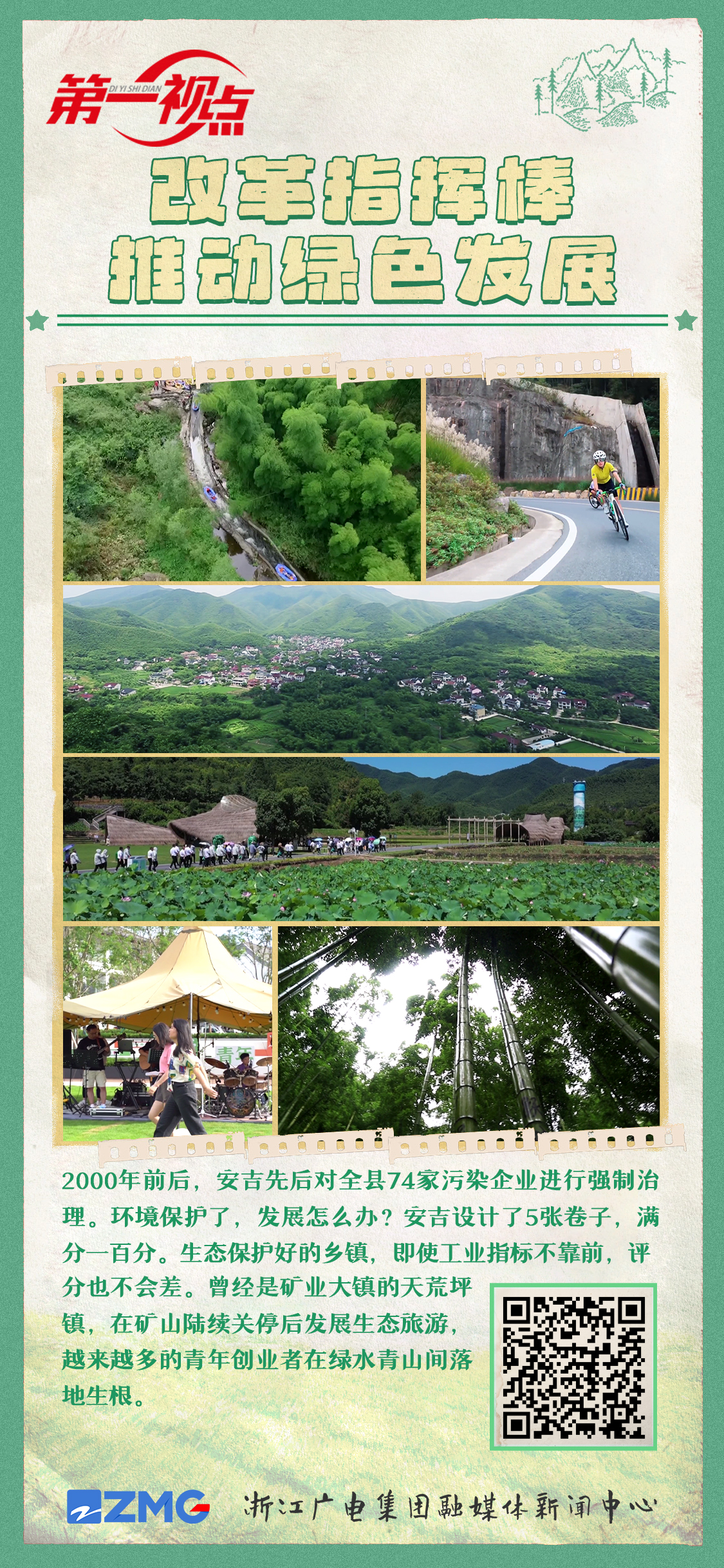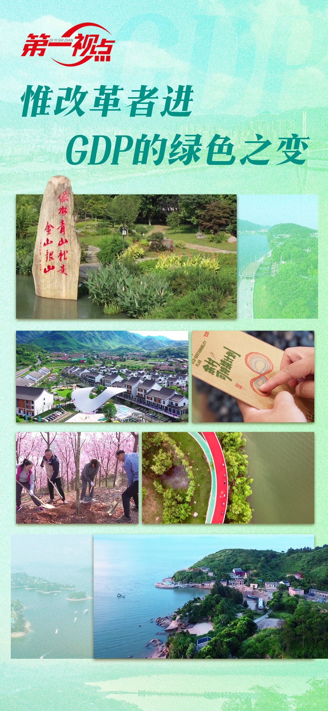 丽水在全国率先探索生态系统生产总值gep核算,打通绿水青山向金山银山的转化通道;安吉设计了5张卷子,满分一百分。生态保护好的乡镇,即使工业指标不靠前,评分也不会差。指挥棒这么一改,曾经是矿业大镇的天荒坪镇,在矿山陆续关停后发展生态旅游,“借景生财”。刚刚建成的环山绿道,把天荒坪镇的四五个村串珠成链。大伙组建联盟,抱团成立了旅游管委会,办起了“青来集”创业基地……吸引了越来越多的青年创业者在绿水青山间落地生根。