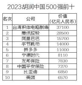 按照企业市值或估值进行排名,胡润研究院最新发布的《2023胡润中国500强》,列出了中国500强非国有企业。台积电蝉联第一,腾讯排第二,阿里巴巴排第三。陕西3家公司上榜,分别是隆基绿能、巨子生物、蓝晓科技。