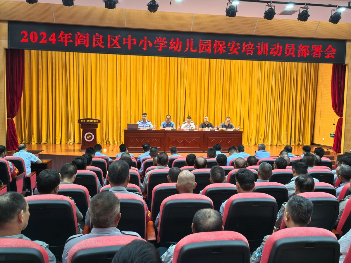 阳光讯(记者 赵生杰)8月14日上午,公安阎良分局、区教育局、西安阎良航空基地学校管理中心,在铁一中航空城分校联合召开2024年阎良区中小学幼儿园保安培训动员部署会。公安阎良分局、区教育局、西安阎良航空基地学校管理中心相关领导,分局各派出所治安副所长、校园专干民警,全区中小学幼儿园保安队长及秦盾保安公司、欣宇物业等多个校园保安从业单位约150余人参加会议。